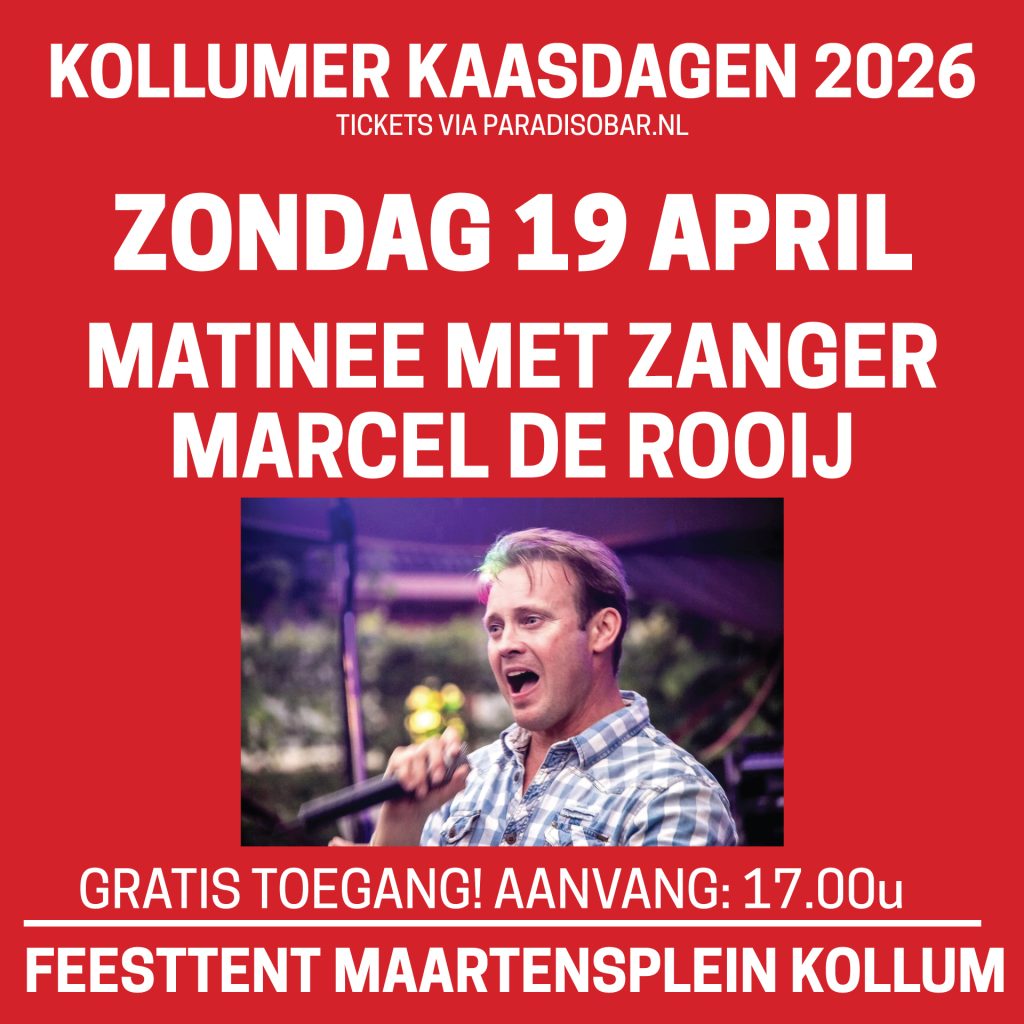 Gratis entree. Op zondag 19 april 2026 vanaf 17.00 uur gaat voor derde keer tijdens de Kollumer Kaasdagen de zondagmiddag matinee los!